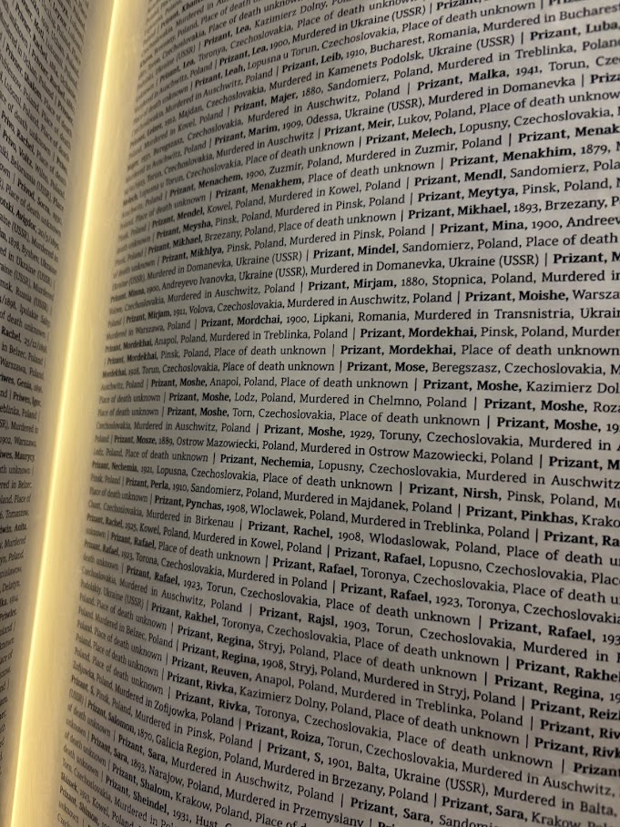 Inside Auschwitz, there is a book containing 4.5 million names of Holocaust victims. I did not have time to search for every branch of my family history, but I found three pages of victims with the surname “Prizant,” nearly identical to my mother’s maiden name, Prizont. My immediate family has no Holocaust survivors because they emigrated to Argentina or the United States decades before the war. Still, encountering those names unearthed a grief I did not know I carried. The book offered a glimpse into lives and stories I will never know because of the Nazis’ brutality.