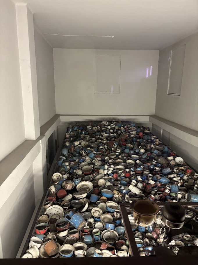 The color-coded pots and pans, familiar to anyone who has been in a kosher kitchen, affected me deeply. Prisoners brought what little they could carry, holding tightly to Jewish tradition, even down to the details of their cookware, because it mattered to who they were. Many were led to believe they would return to their belongings after being disinfected. The calculated cruelty of the Nazis, exploiting that trust and persistence, is beyond understanding.