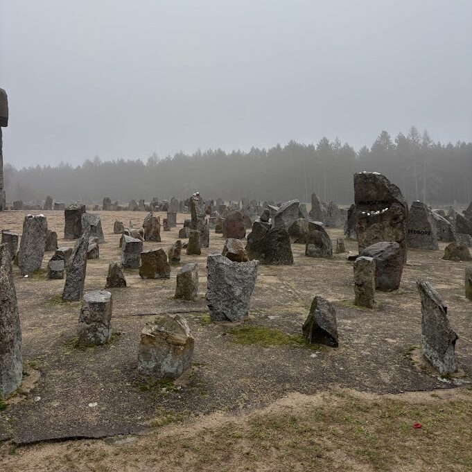 Our final site was Treblinka. Few people survived. Entire towns were erased. The Nazis destroyed nearly all physical evidence of the camp, leaving no buildings behind. In their place stands a field of 17,000 stones, marking the scale of the murder that occurred there in a single day. We walked silently among them, grappling with what each stone represented.